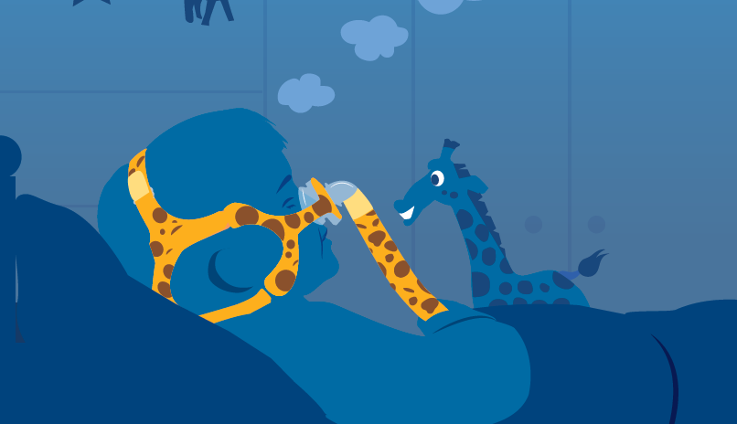 Schauen Sie sich mit Ihrem Kind das Bilderbuch an, das anschaulich beschreibt, wie die Wisp Pädiatrie Nasenmaske Ihrem Kind helfen kann, um am Tag wieder putzmunter zu sein.